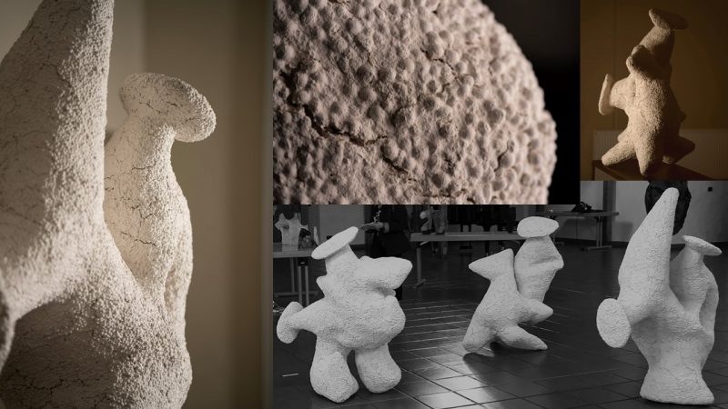 There are three sculptures: Their surface is spherical and cracked, the spheres symbolize the viruses that attack an organism, break it open and slowly destroy it. The cracks show the decay of the living being, which is depicted in an organic-abstract form. The design of the sculptures was purely intuitive; on the one hand, they are intended to come close to people in their soft, curved form, making you want to touch them. On the other hand, they are intended to appear archaic and to indicate death and viral infection. A pandemic is something archaic, nature has us completely under control, we are not the rulers of the world as we often believe. Even today we are largely powerless against illness and death.