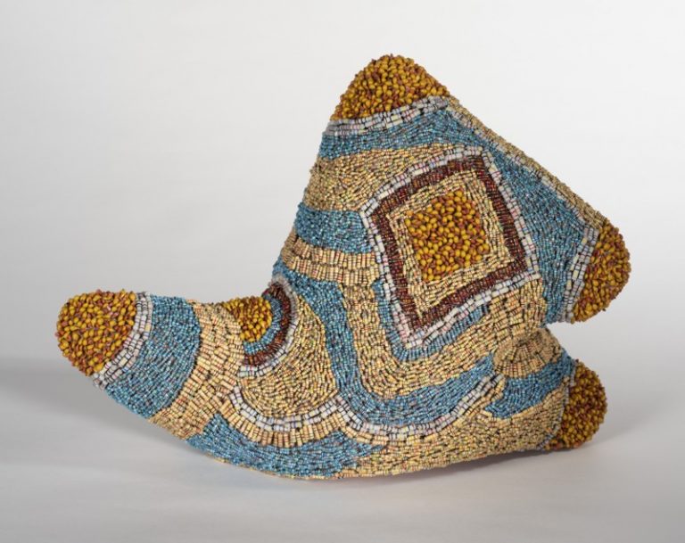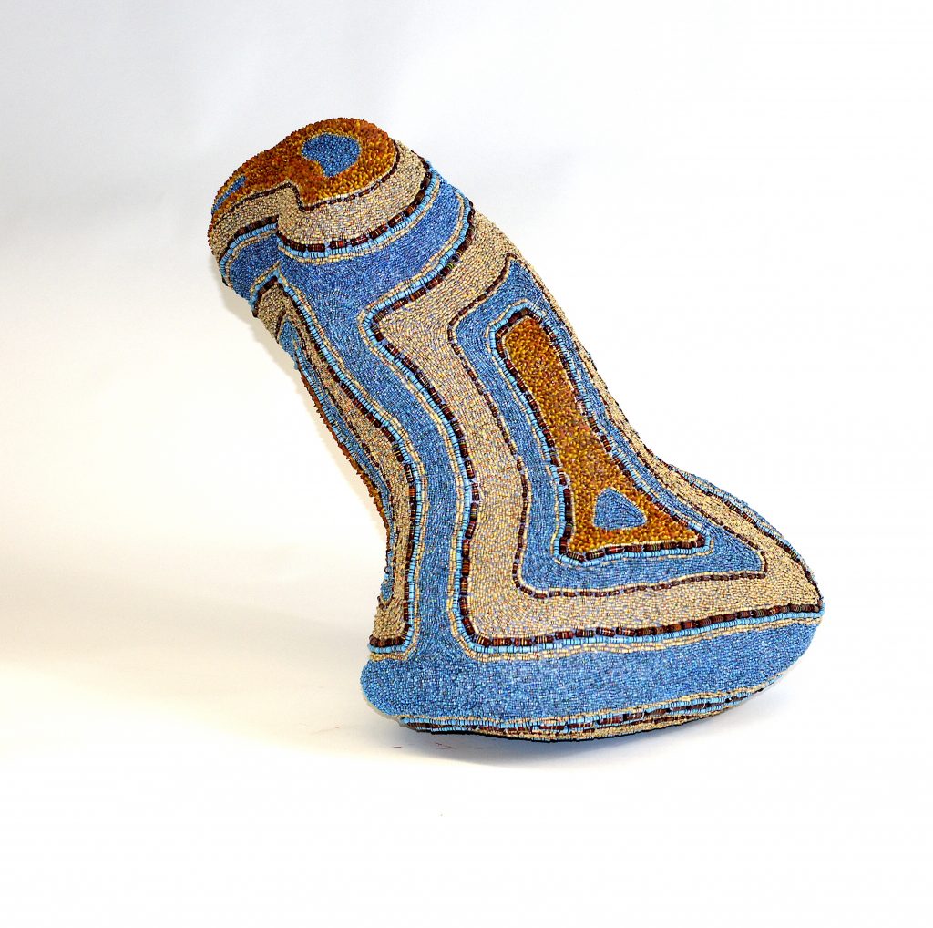 Our hands create things, we desire to create things. This wonderful quality belongs to us and it is of enormous importance for our humanity. Art and cult objects have a long tradition in human history, the way the object is made points to archaic cultures. The work takes up traditional design methods of various archaic people, for example many African people work with shells or pearls that are pressed into clay or resin mixtures.